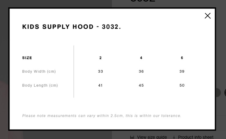 | Half Chest (cm) | 41 | 43 | 47 | 50 | 56 | 60 |